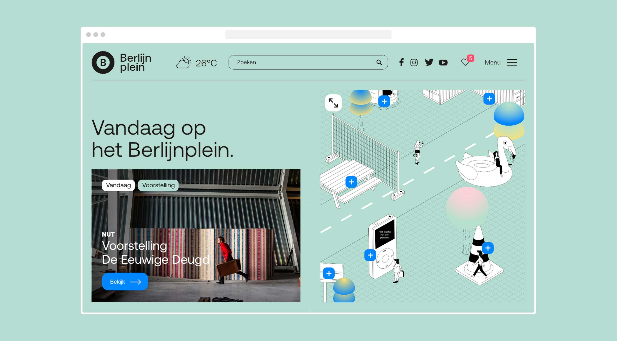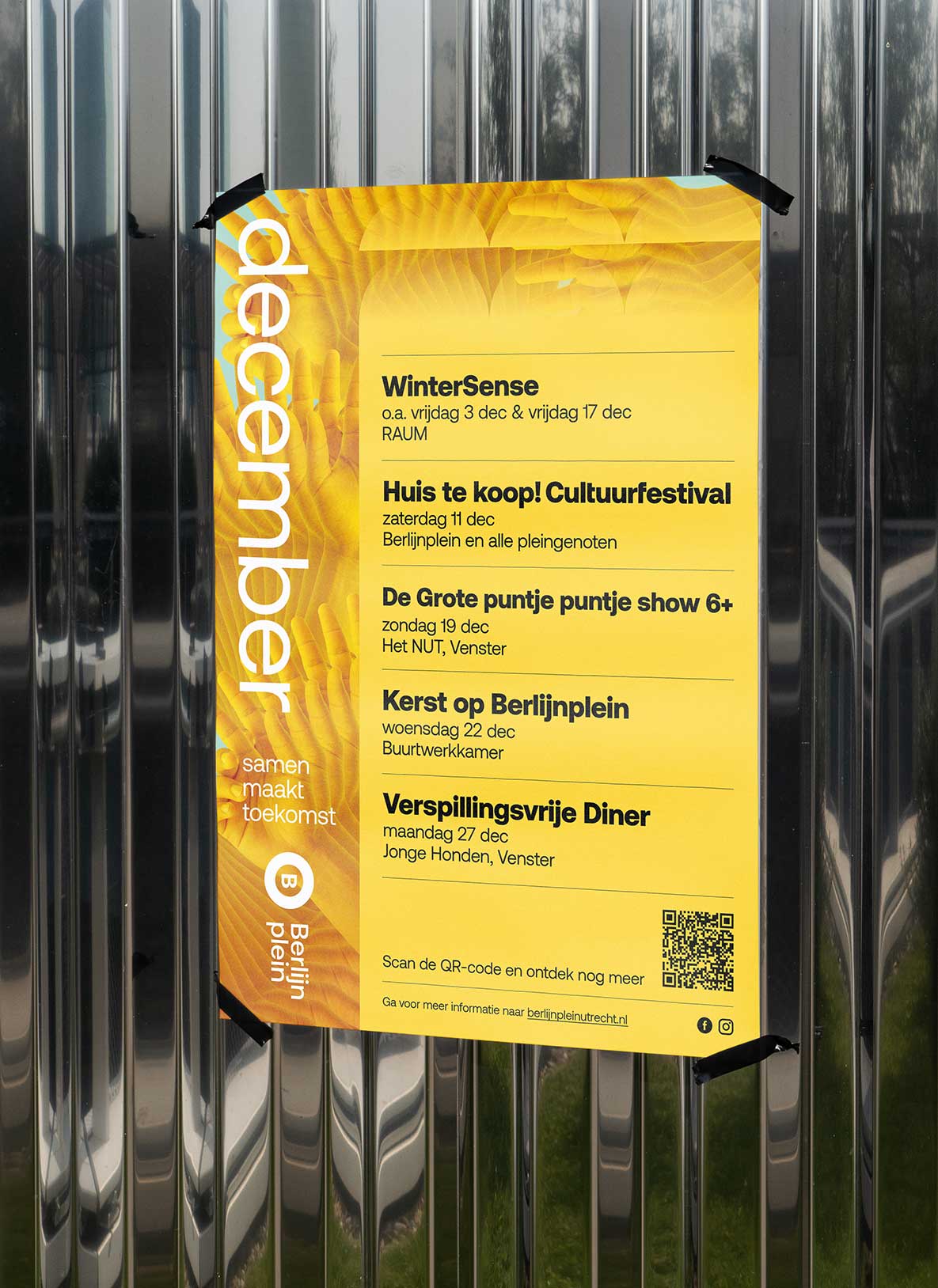 Nu er meer mensen dan ooit in steden wonen, is het tijd bewust te kijken naar de toekomst van de stad. Op het Berlijnplein in Utrecht gaan diverse partners aan de slag met dit thema. Op cultureel, sociaal en technologisch gebied. Samen maken ze de toekomst van de stad tastbaar. Wij verzorgden de strategie, 3d vorm onderzoek, branding en visuele identiteit.