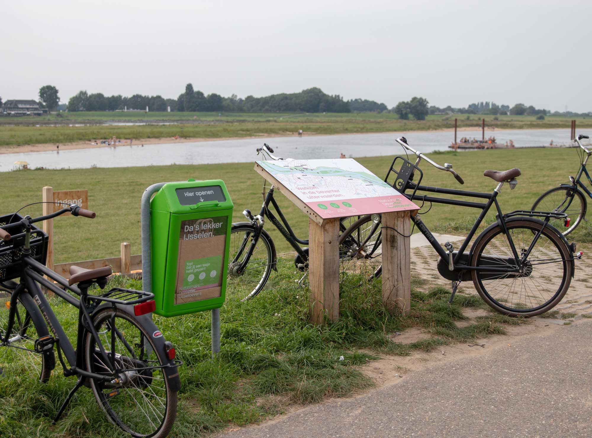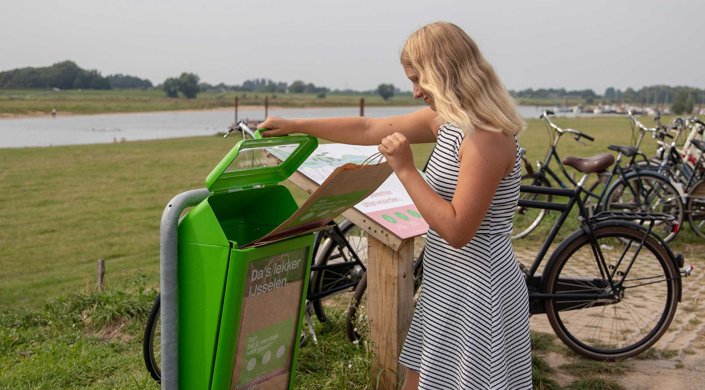 De oevers van de Deventer IJssel zijn populair. Dat is mooi, maar het afval die de populariteit met zich meebrengt is niet goed voor het milieu. Een tijd geleden doopten we de oevers van de IJssel daarom om tot Natuurpark Deventer IJsseloevers. De bakken waarin je afvalzakken kunt pakken maakten we met de hand van oude prullenbakken. Da’s lekker IJsselen!