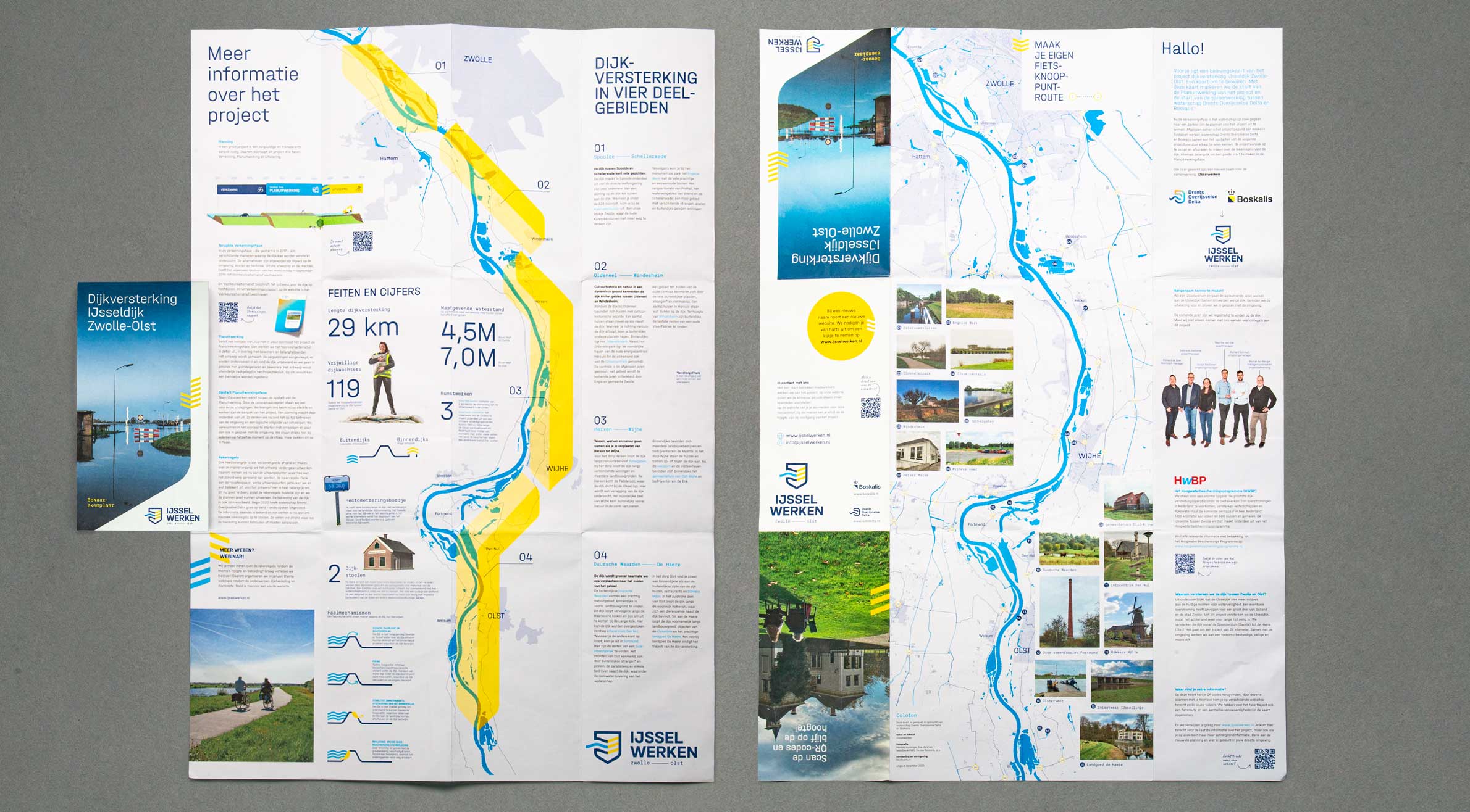 Droge voeten. Eigenlijk zijn we niet anders gewend. We wonen pal naast de mooiste rivier van Nederland en soms staat het water hoog. Maar toch gaat het altijd goed. Om dat zo te houden wordt er de komende jaren gewerkt aan de IJsseldijk. Wij bedachten de projectnaam en gaven vorm aan de identiteit waarmee Boskalis en Waterschap Drents Overijsselse Delta de komende 6 jaar mee naar buiten treden.