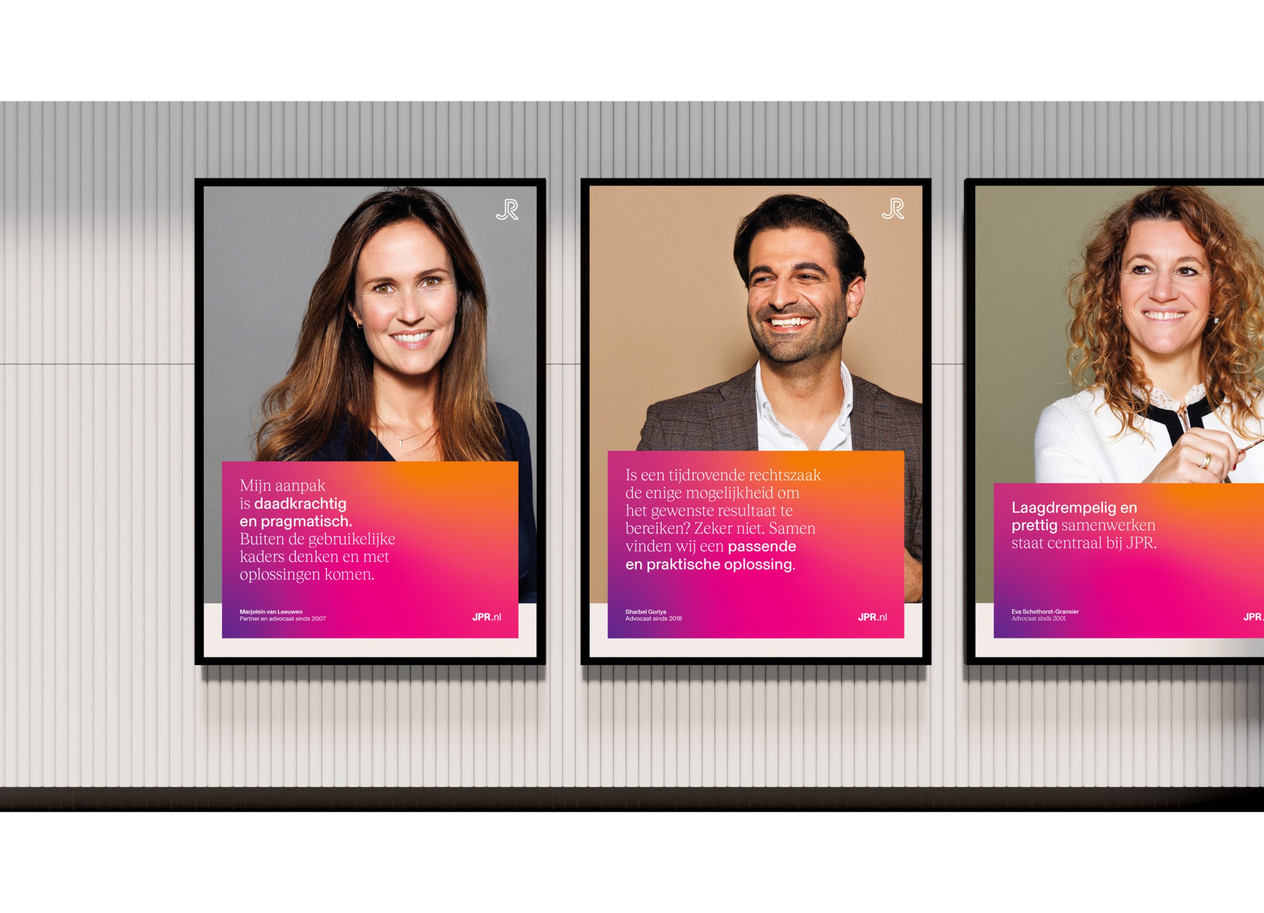 Het is tijd voor nieuwe advocaten. Want laten we eerlijk zijn, voor buitenstaanders lijkt het vak te gaan over traditie, hiërarchie en status. Niet bij JPR. Geen hokjes of belangrijk doen. Hier worden vooroordelen doorbroken met een geheel eigen kijk op advocatuur. Die zou je gerust vernieuwend kunnen noemen. Bram Groenen tuigde een ijzersterke strategie op en Namarama vertaalde dit naar een mooie merkbelofte, wij vertaalden dit naar een nieuwe visuele identiteit.