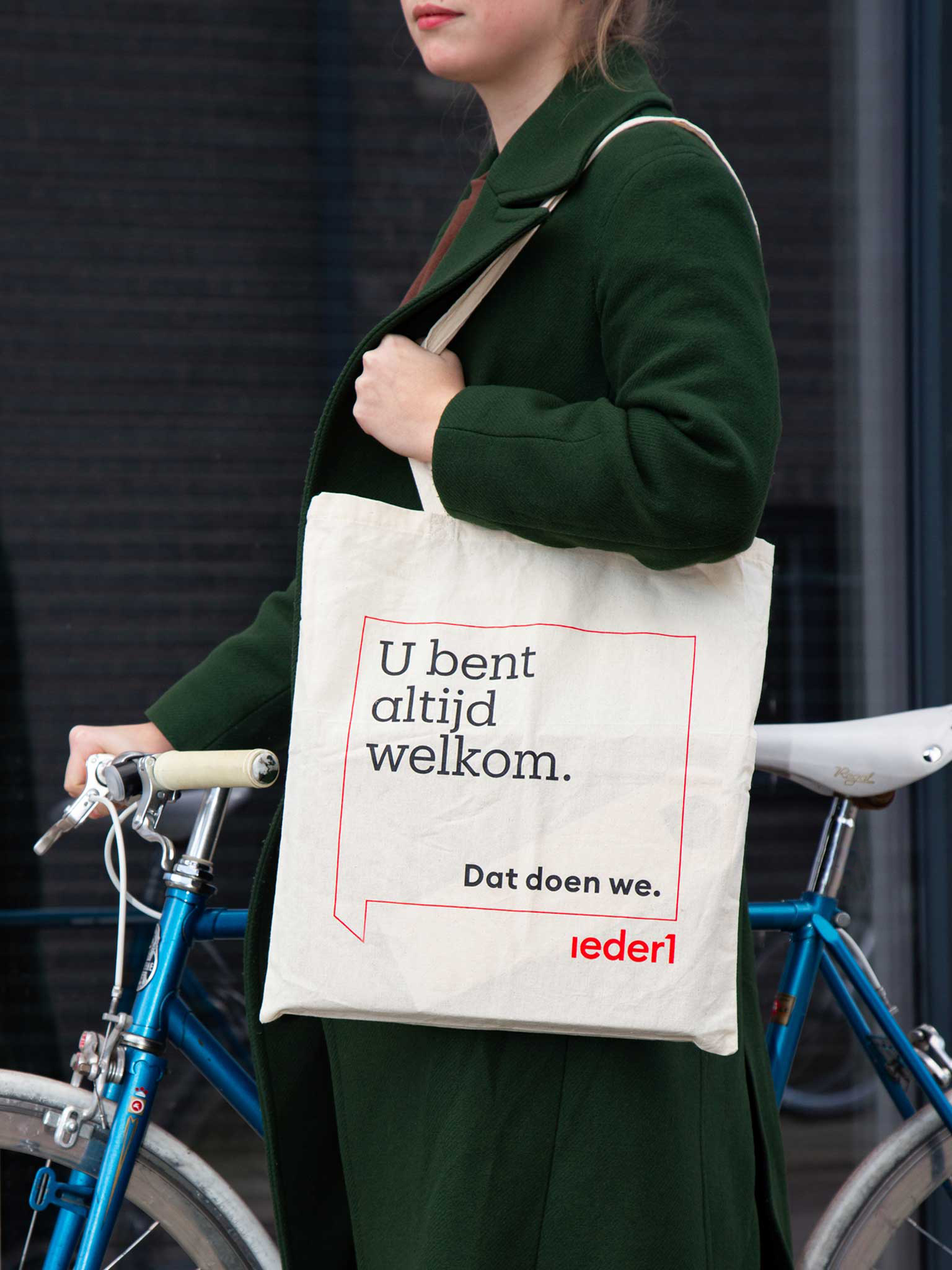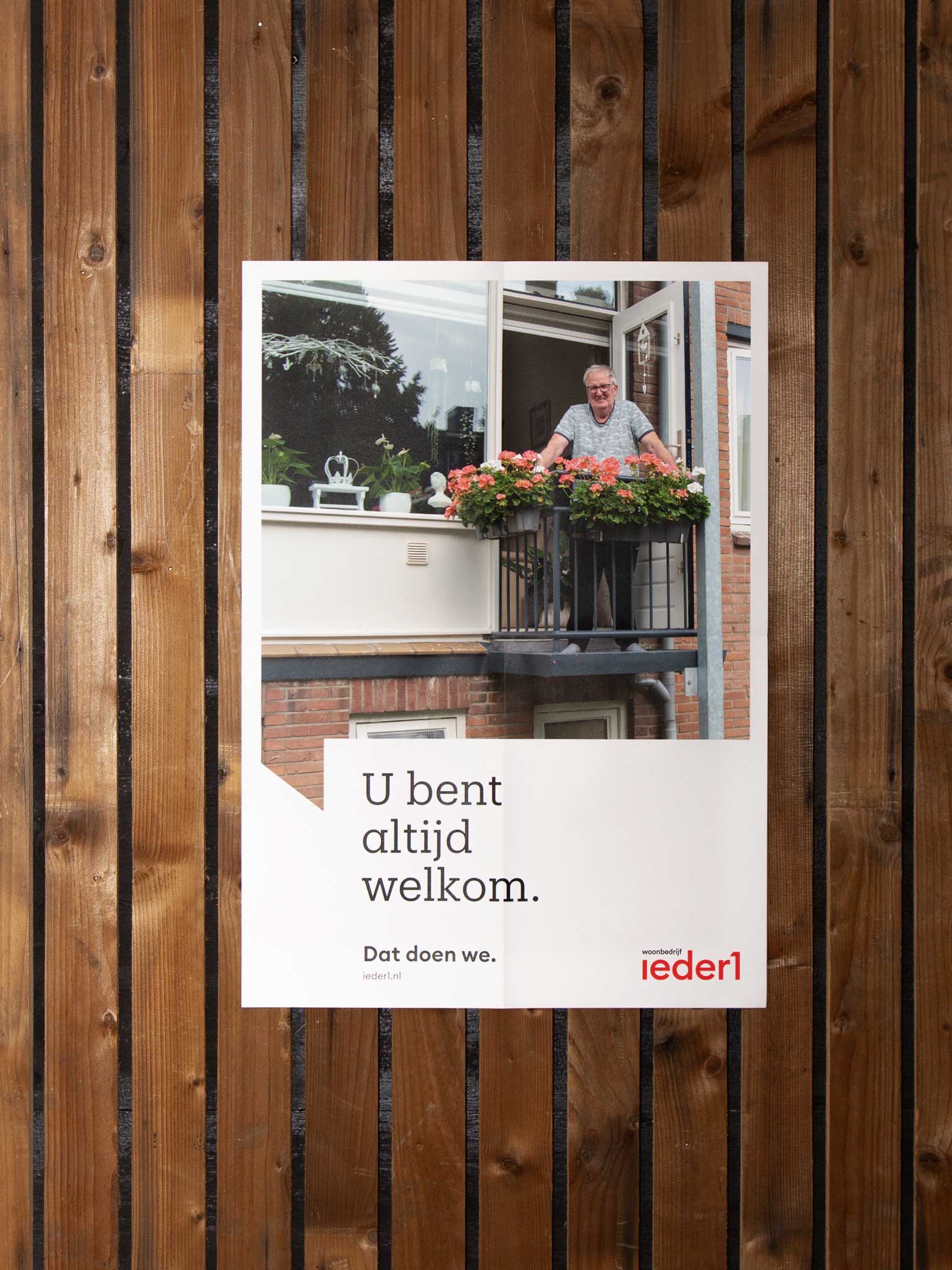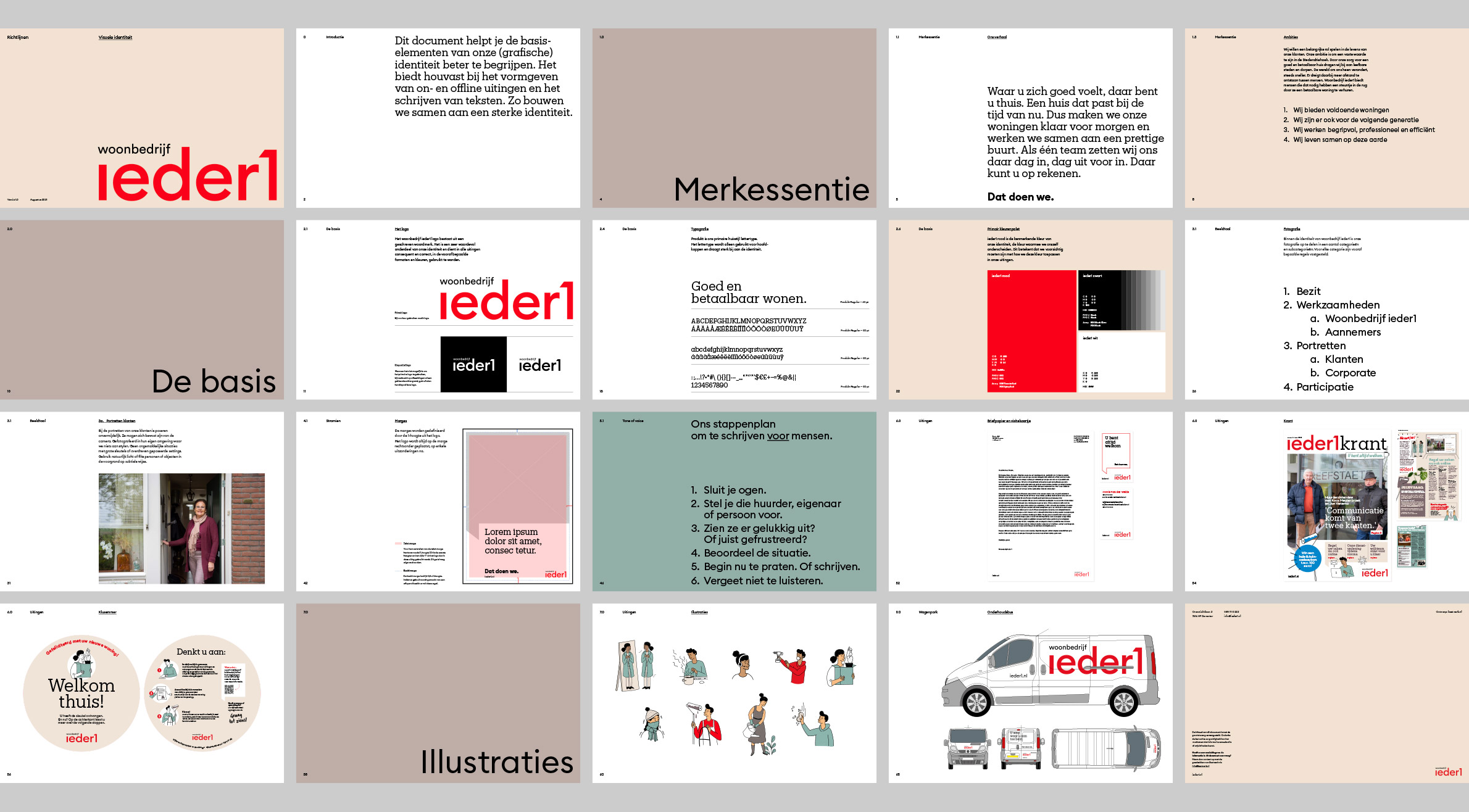 Woonbedrijf ieder1 kennen we inmiddels goed. Met het project Klaar voor Morgen werken we al enkele jaren aan participatie en communicatie met de huurder. En met succes! Voor jaar leverde ieder1 maar liefst 700+ gerenoveerde woningen op. Die daadkracht namen we als uitgangspunt voor een nieuwe merkformule met 4 klantbeloften én een nieuwe huisstijl. Sober en doeltreffend. Dat doen we!